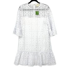 Kate Spade Womens Fresh White Short Sleeve Button Up Sheer Leaf Lace Blouse XS