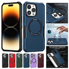 Mag Safe Slim Phone Case For iPhone 16 Pro Max 15 14 13 Frosted Ring Stand Cover