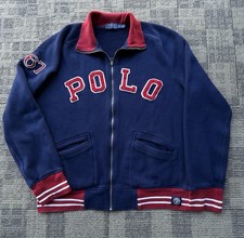Polo Ralph Lauren Red Navy Blue Polo Pony 4 Snap Fleece Pullover Men's Sz Medium