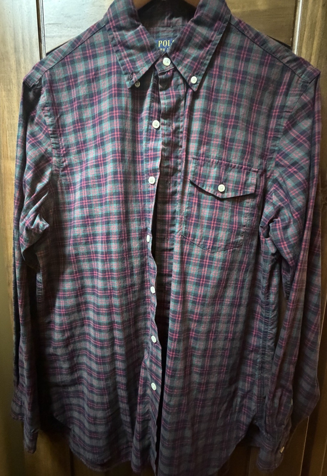 Polo Ralph Lauren Mens Size Medium Red Green Tartan Plaid Cotton Oxford Shirt
