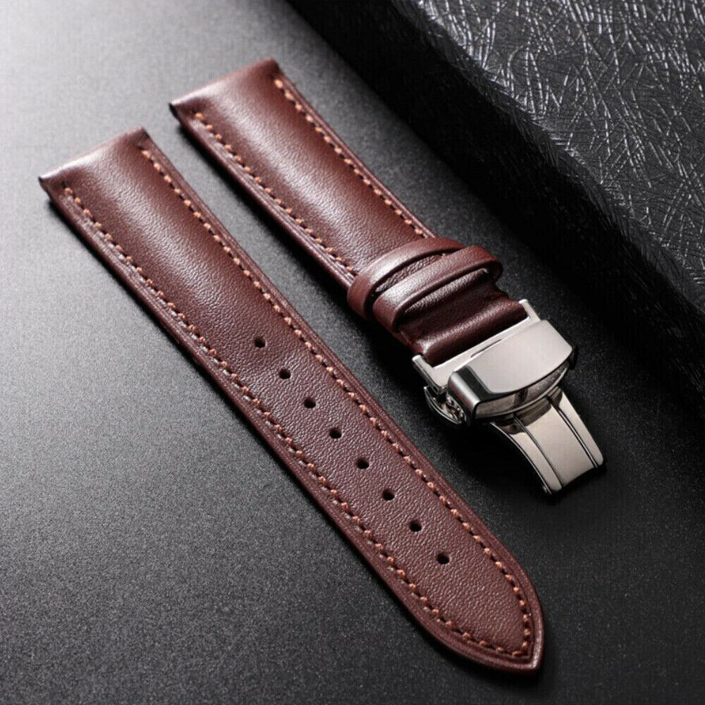 Premium Replacement Genuine Leather Watch Band Bracelet with Deployment Buckle