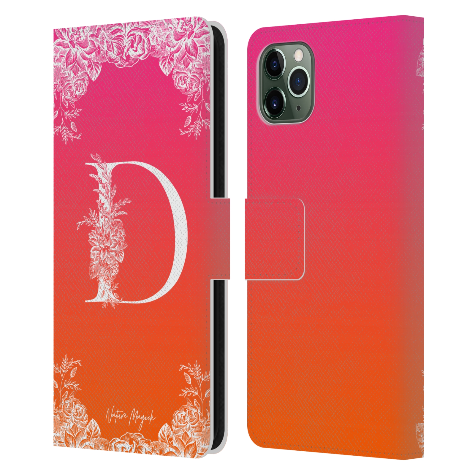 NATURE MAGICK WHITE FLORAL MONOGRAM 1 LEATHER BOOK WALLET CASE FOR APPLE iPHONE